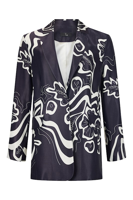 TIA Black and Cream Pattern Longline Blazer