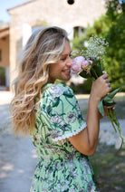 The Sylvie is a breath of fresh air for early spring. Cut in a green multi print, this tea dress silhouette feels effortlessly pretty, with lace trim detailing softening the V neckline and tiered skirt. Light, feminine and easy to style, The Sylvie brings a touch of joy to those first lunches, birthdays and weekend plans of the season.