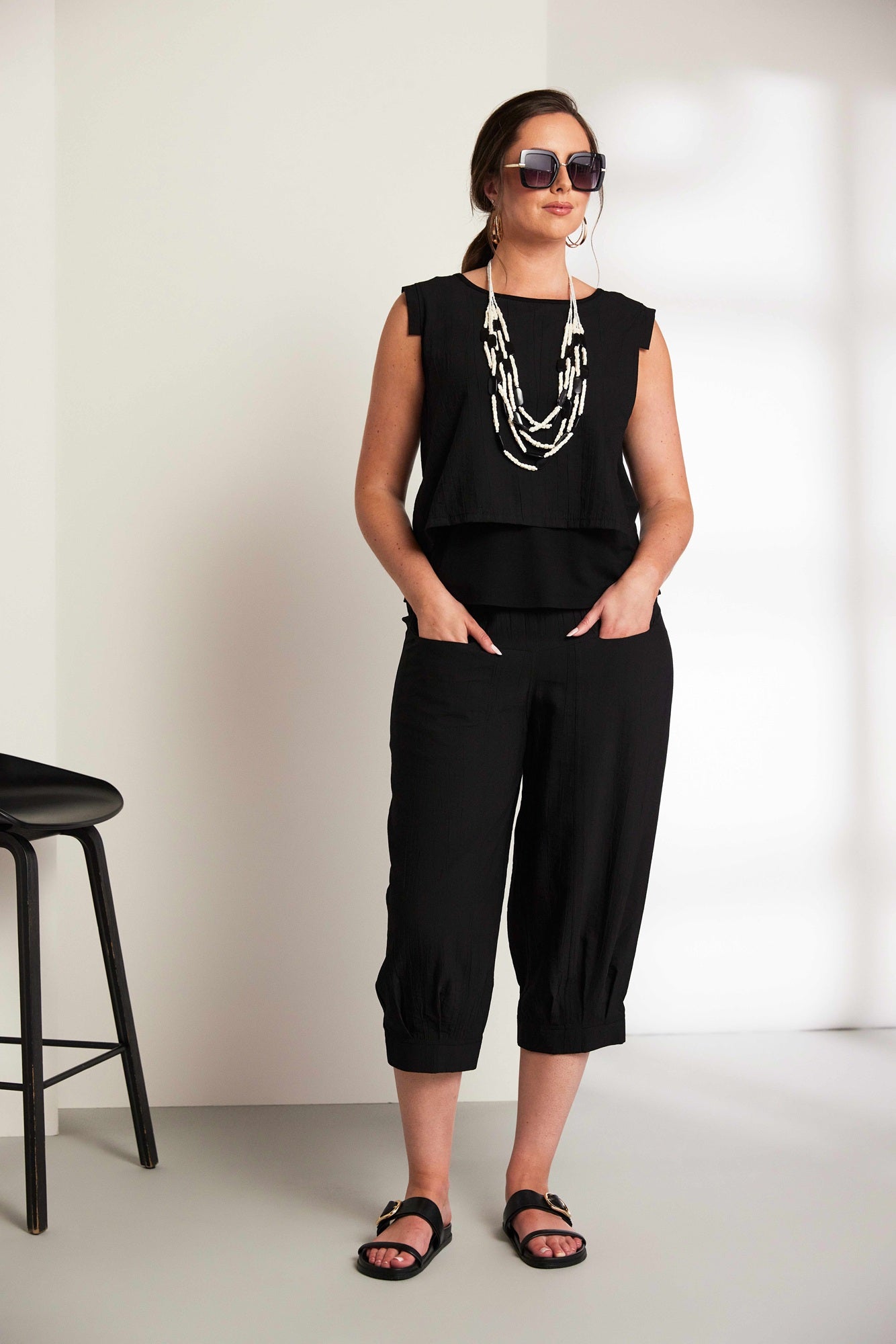 ORA black pleated wave trousers