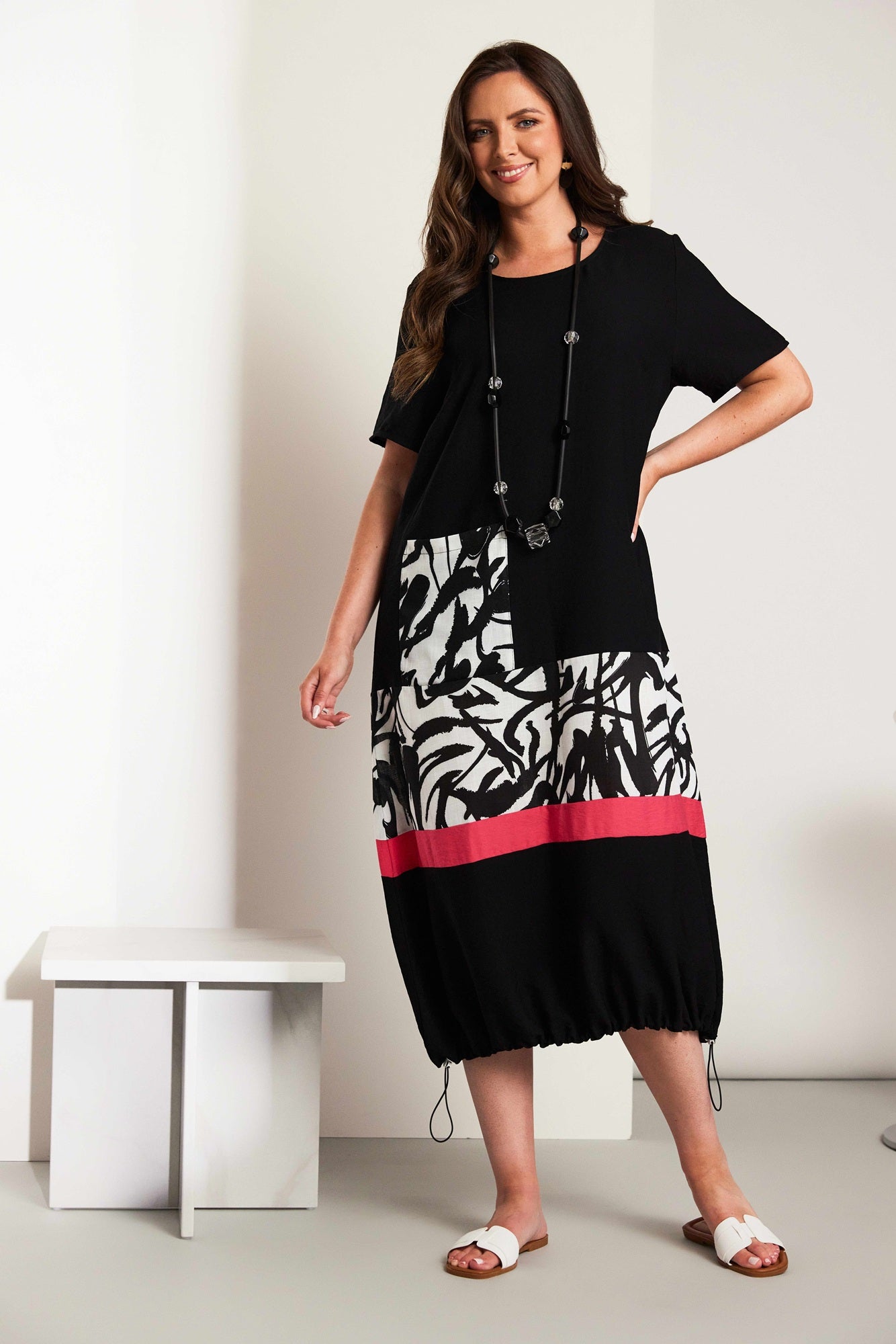 ORA Black Print Dress