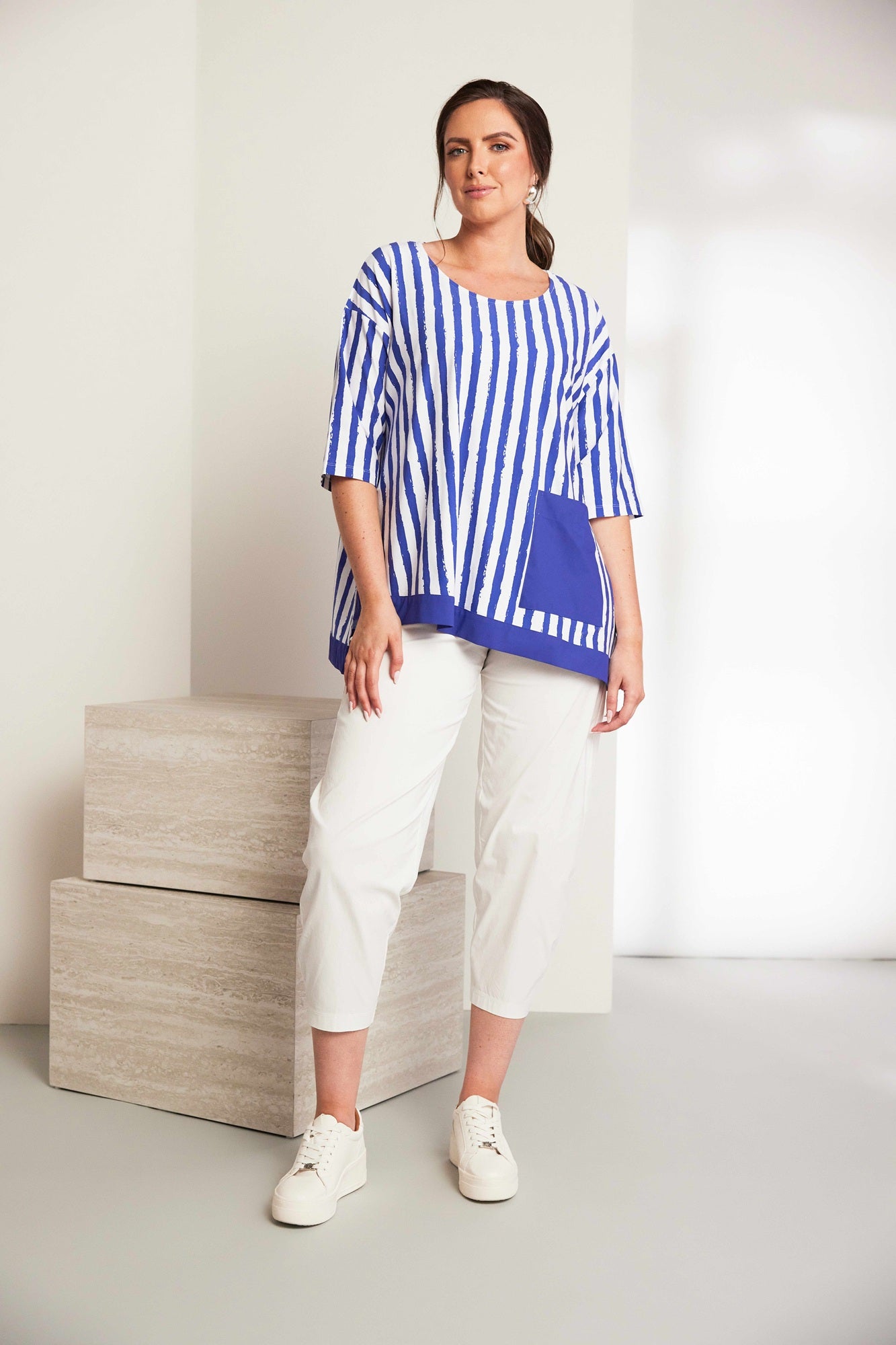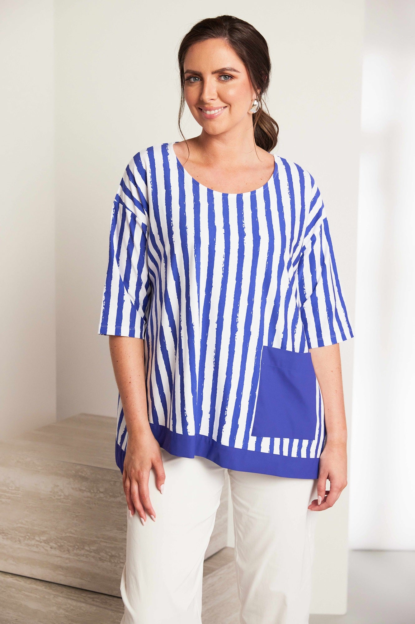 ORA Royal Stripe Pocket Top