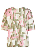 LEBEK Khaki and Pink Swirl Top